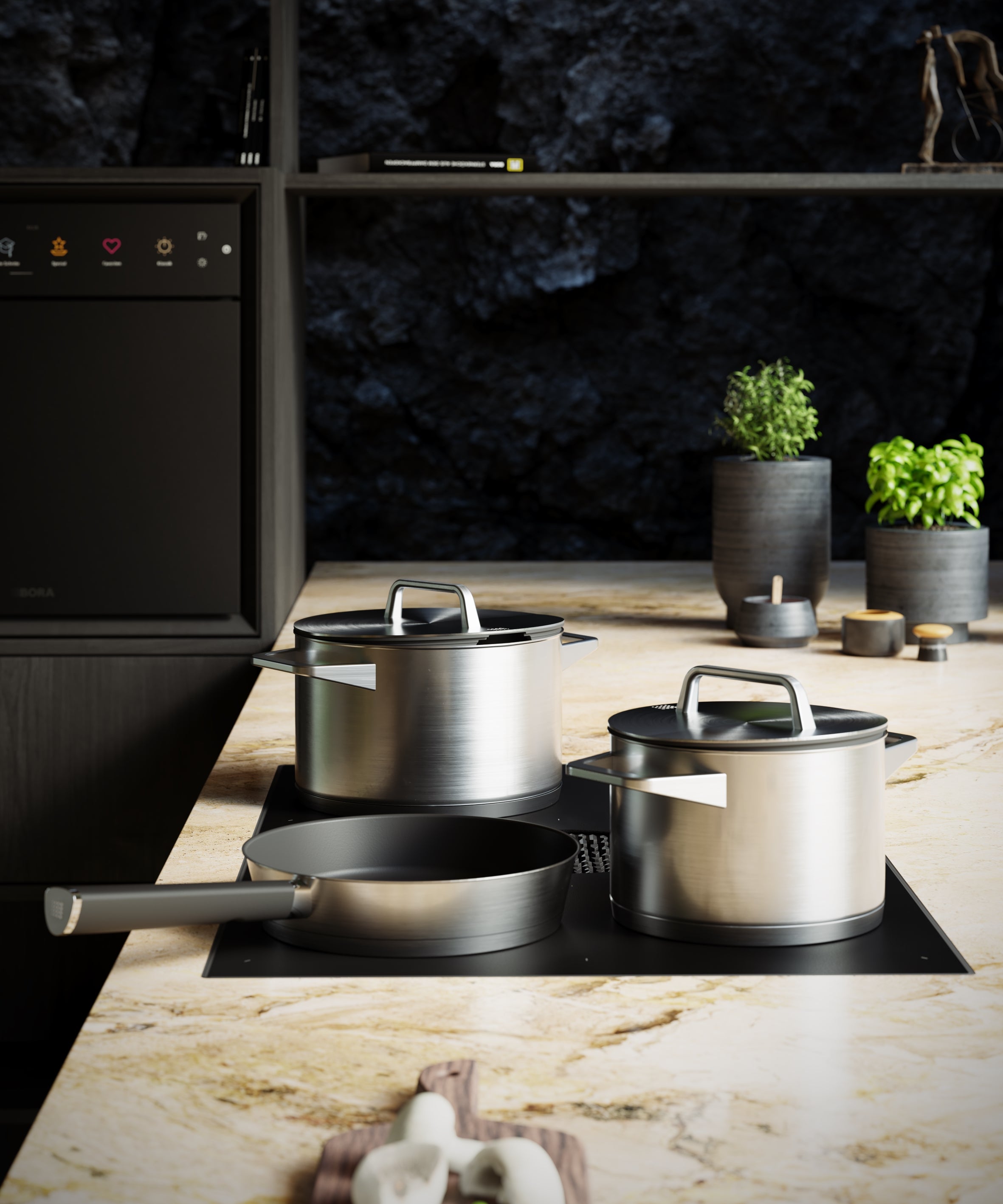Met een BORA kookplaat met geïntegreerde afzuiging kookt u zonder hinderlijke kookdampen of geurtjes. De afzuiging zuigt direct bij de bron af, terwijl het strakke design perfect past in een moderne keuken.