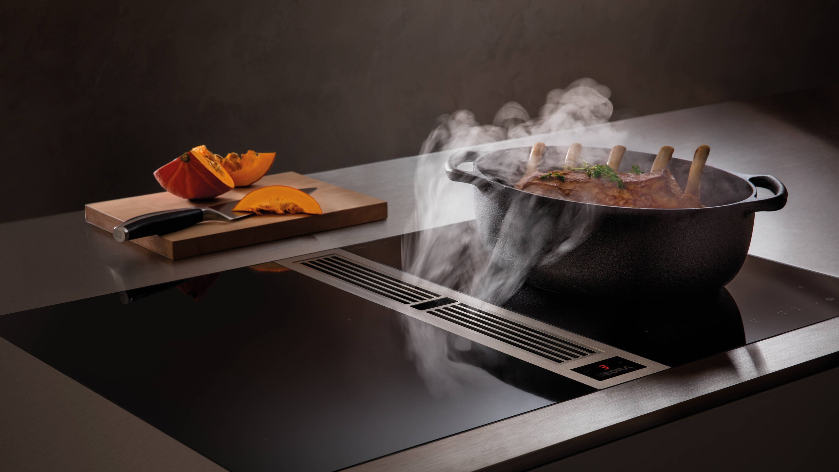 De afzuiging is krachtig maar fluisterstil, zodat je ontspannen kunt koken en praten.