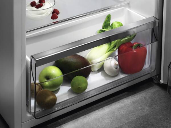 Dankzij het automatische ontdooisysteem blijft de koelruimte ijsvrij en onderhoudsvriendelijk. Binnenin zorgen twee glazen legplateaus, een groentelade en heldere LED-verlichting voor een overzichtelijke indeling. Met een geluidsniveau van slechts 38 dB is de koelkast bovendien opvallend stil in gebruik.