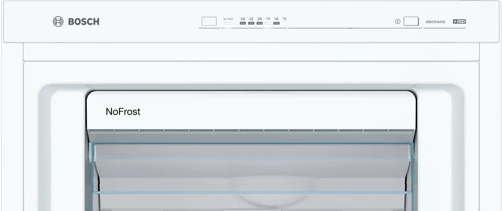 De Bosch GSN29EWEV biedt met 200 liter inhoud een compacte maar ruime oplossing voor al je diepvriesproducten. Dankzij NoFrost hoef je de vrieskast nooit meer handmatig te ontdooien en blijven je producten beschermd tegen ijsvorming. Met de BigBox XXL-lade heb je extra ruimte voor het opslaan van grote verpakkingen of meerdere pizzadozen boven elkaar.