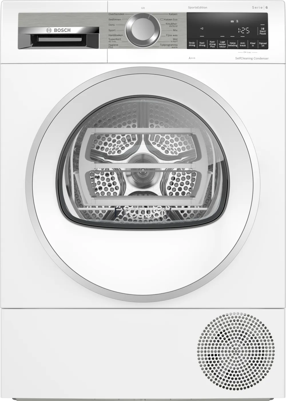 De Bosch WQG235D9NL is een energiezuinige warmtepompdroger met een vulgewicht van 8 kg en energieklasse C. Dankzij de Sensitive Drying trommel wordt je wasgoed gelijkmatig en voorzichtig gedroogd, zodat kleding langer mooi blijft. De AutoDry-technologie voorkomt krimpen en stopt automatisch zodra de gewenste droogtegraad bereikt is. Met programma’s als dons, sport, beddengoed en een SuperKort 40-minuten programma heb je altijd de juiste instelling bij de hand.