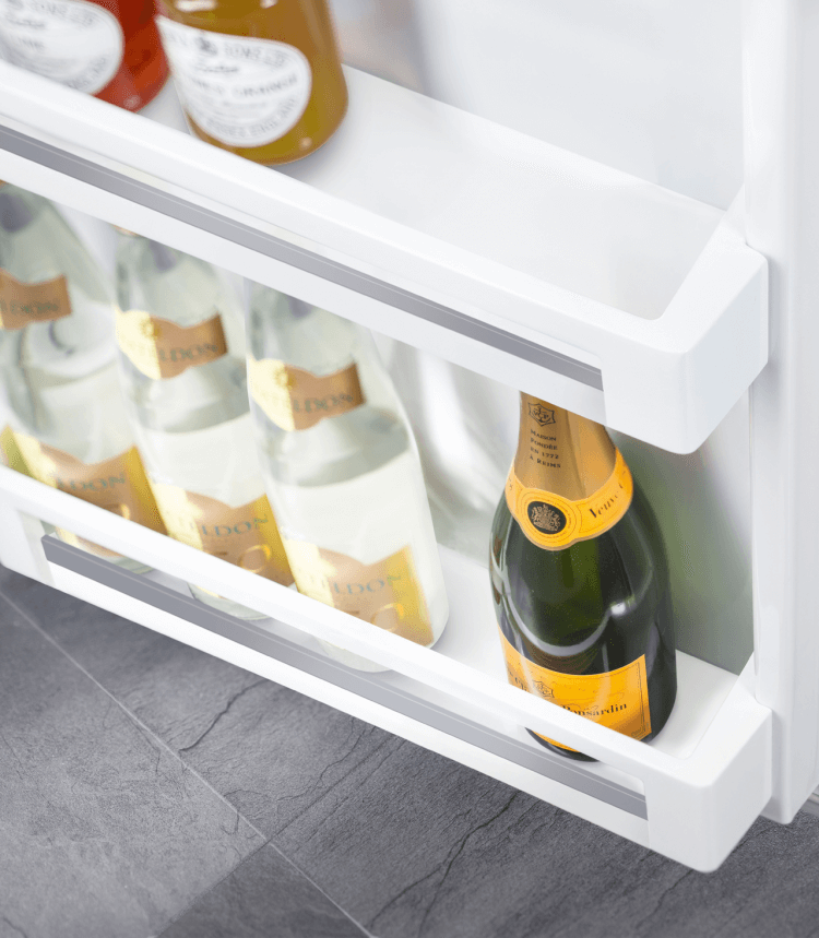 Deze Liebherr dubbeldeurs koelkast van 55 cm breed in Steel-look is lekker compact maar biedt een aantal handige voordelen zoals: LED verlichting, uitneembaar glasplateau in het vriesvak, kastbrede groentelade en verstelbare deurvakken. De stevige GlassLine draagplateaus zijn belastbaar tot 30 kg en kunnen op de ideale hoogte in het koeldeel worden geplaatst. Het vriesgedeelte is gemakkelijk bereikbaar en eenvoudig en snel te ontdooien.