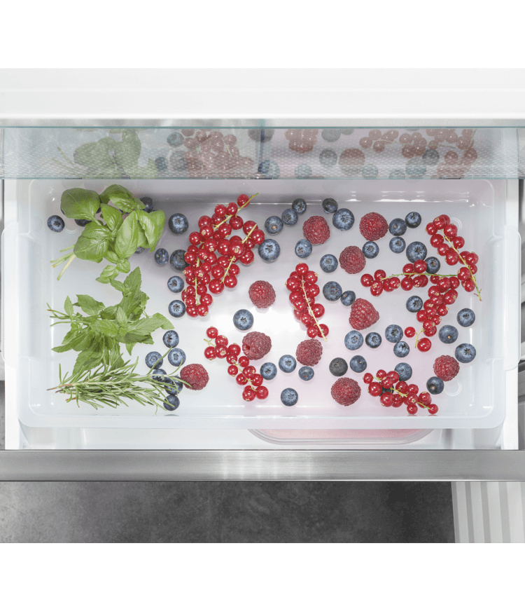 Deze NoFrost koel/vriescombinatie hoeft u nooit te ontdooien en biedt met een robuuste donkere BlackSteel afwerking, LED wandpanelen en ambient verlichting een interieur dat luxe uitstraalt. In de BioFresh Professional laden met HydroBreeze bewaart u groenten en fruit tot 3x langer. Voor een maximale versheid wordt een frisse nevel over de groente en fruit verspreid. Vis en zeevruchten blijven in de Fish & Seafood-safe extra lang vers. De IceMaker met wateraansluiting zorgt voor voldoende voorraad ijsblokjes.