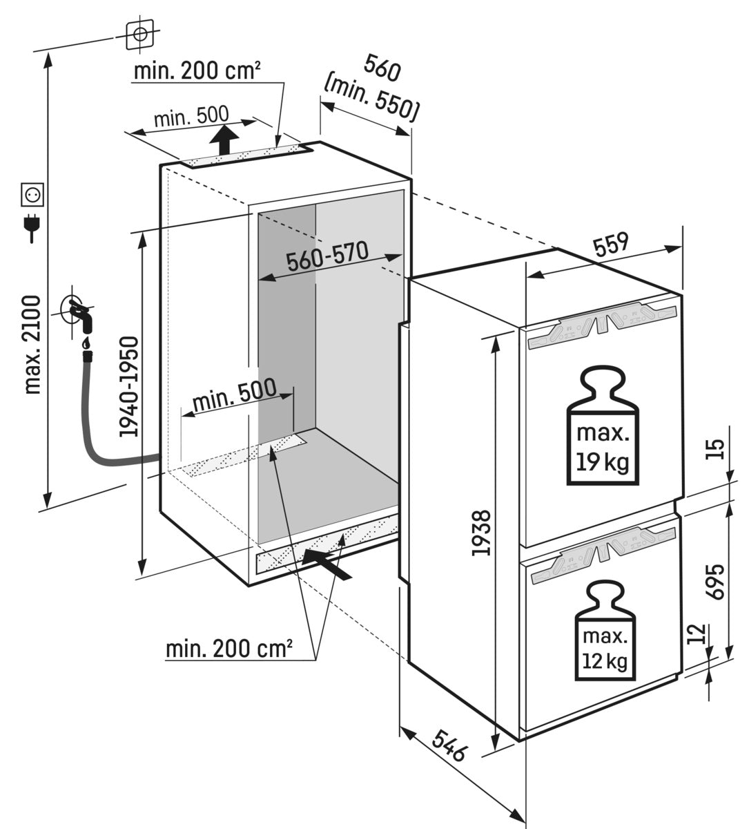 In deze extra hoge nis 194 koel/vriescombinatie aan luxe geen gebrek. De SmartSteel achterwand geeft een professionele uitstraling. Perfecte verlichting met de LED wandpanelen en de deur met SoftSystem sluit altijd zacht. Het FreshAir filter zorgt dat geuren worden geneutraliseerd. In de 2 BioFresh laden op SoftTelescopic rails bewaart u groenten en fruit tot 3x langer. Eenvoudige bediening met het Touch & Swipe kleurendisplay. Het NoFrost vriesdeel met LED verlichting hoeft u nooit meer te ontdooien.