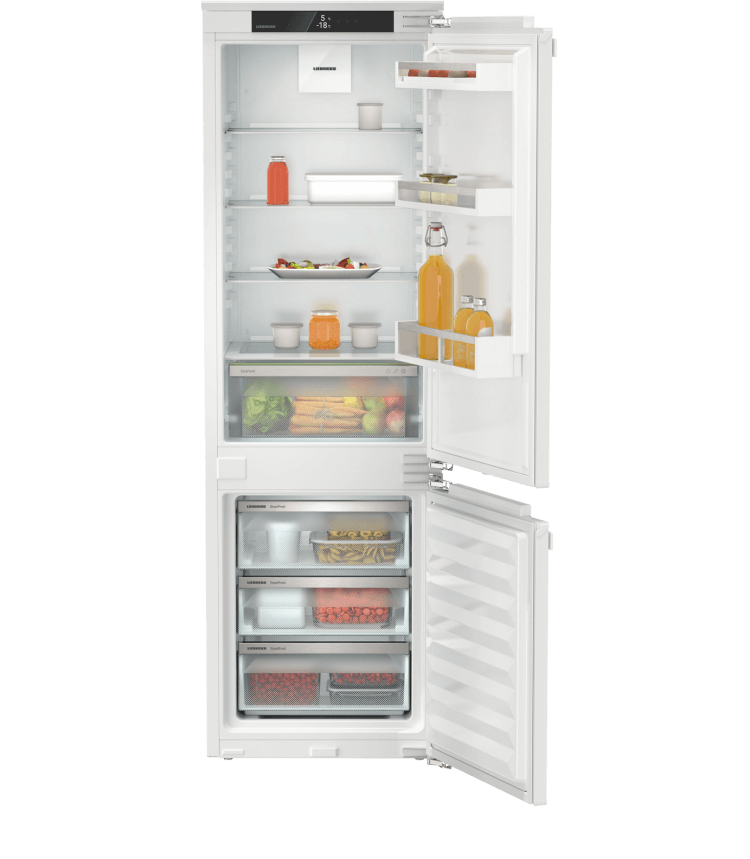 Deze inbouw koel/vriescombinatie uit de Pure-serie voorziet in alle essentiële behoeften. In de EasyFresh lade bewaart u groenten en fruit bij de ideale luchtvochtigheid. Het ruime koeldeel biedt plaats aan een volledige bakplaat en wordt dankzij de LED plafondverlichting goed verlicht. Het FreshAir filter zorgt voor een fris interieur en het SmartFrost vriesdeel kan snel worden ontdooid en biedt plaats aan grote verpakkingen. Geschikt voor smarthome toepassingen dankzij de optionele SmartDeviceBox.