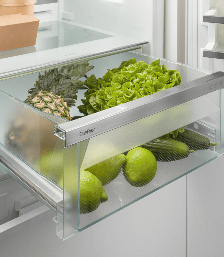Deze koel/vriescombinatie biedt alles. Het robuuste donkere BlackSteel interieur is hygiënisch en geeft een professionele donkere uitstraling. De LED wandpanelen en Ambient verlichting zorgen dat niets aan uw oog ontsnapt en de deur met SoftSystem sluit altijd en zacht. In de EasyFresh lade bewaart u groenten en fruit zodat smaak en structuur behouden blijven. Het NoFrost vriesdeel met LED verlichting hoeft u nooit meer te ontdooien. De IceMaker met vaste wateraansluiting zorgt automatisch voor voldoende ijsblokjes.