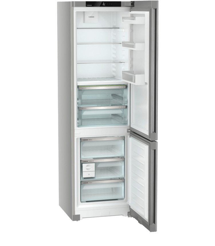 De Liebherr CBNsda 572i Plus is een energiezuinige koel-vriescombinatie met energieklasse A en stijlvolle edelstalen deuren. Dankzij twee BioFresh-lades blijven groenten, fruit, vlees en vis tot 3× langer vers. Het geïntegreerde flessenplateau, deelbare glasplateau en PowerCooling zorgen voor optimaal gebruiksgemak en gelijkmatige koeling. Het NoFrost-vriesdeel hoeft nooit meer te worden ontdooid en de EasyTwist-Ice maakt eenvoudig 60 ijsblokjes per keer. SmartDeviceBox is standaard geïntegreerd, zodat het apparaat volledig via de app te bedienen is.