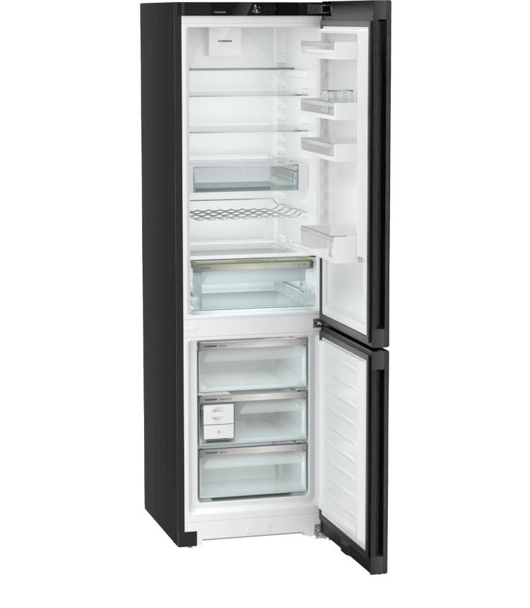De Liebherr CNbda 5723 Plus in stijlvol BlackSteel is een extra zuinige koel/vriescombinatie (Energieklasse A) met nóg meer flexibiliteit en comfort. Dankzij het deelbare draagplateau, het flessenrek, de EasyFresh-lade en het FreshAir filter blijft alles langer vers en georganiseerd. Het NoFrost vriesdeel hoeft nooit meer ontdooid te worden, en met de EasyTwist-Ice maak je zonder wateraansluiting tot 60 ijsblokjes per keer. Optioneel is hij uit te breiden met een SmartDeviceBox voor bediening via de app.
