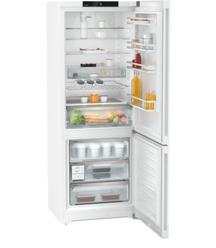 De Liebherr CNd 7723 Plus is een extra brede (75 cm) koel-vriescombinatie met uitzonderlijk veel ruimte en slimme indelingen. Dankzij EasyFresh blijven groenten en fruit langer vers, terwijl het FreshAir-filter onaangename geurtjes voorkomt. Het NoFrost-vriesdeel hoef je nooit meer te ontdooien en met DuoCooling blijven het koel- en vriesgedeelte volledig gescheiden voor optimale versheid. De sterke GlassLine plateaus (tot 30 kg belastbaar), verstelbare deurvakken en deelbaar glasplateau zorgen voor maximale flexibiliteit. Met optionele SmartDeviceBox is dit model klaar voor smarthome-bediening. Energieklasse D.