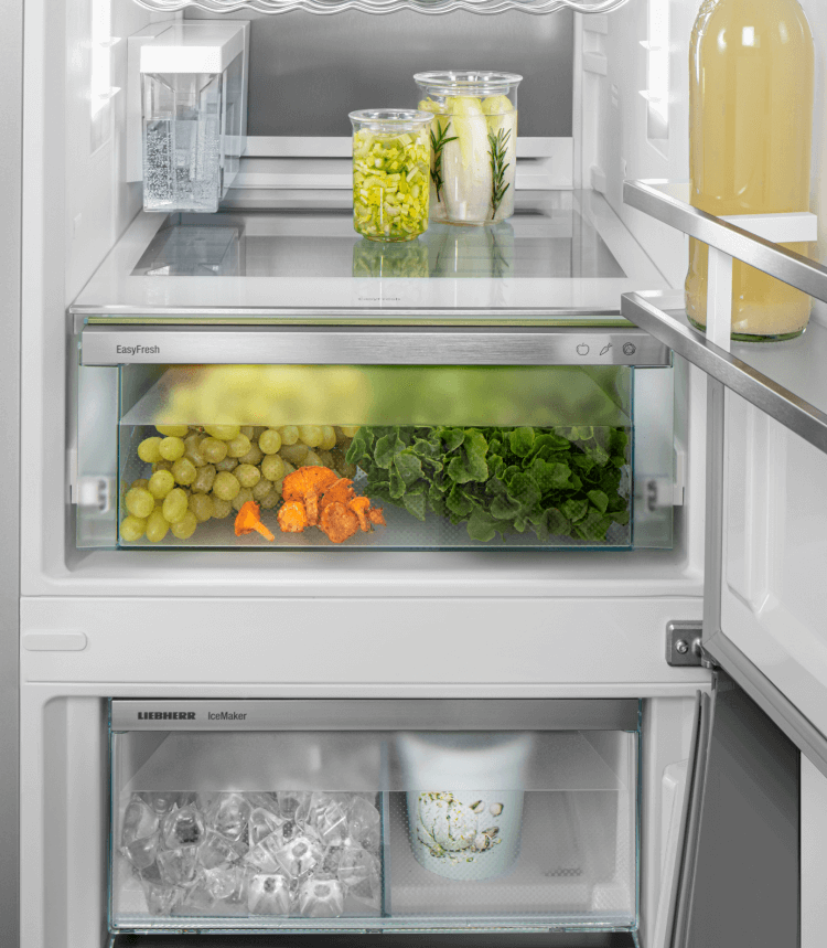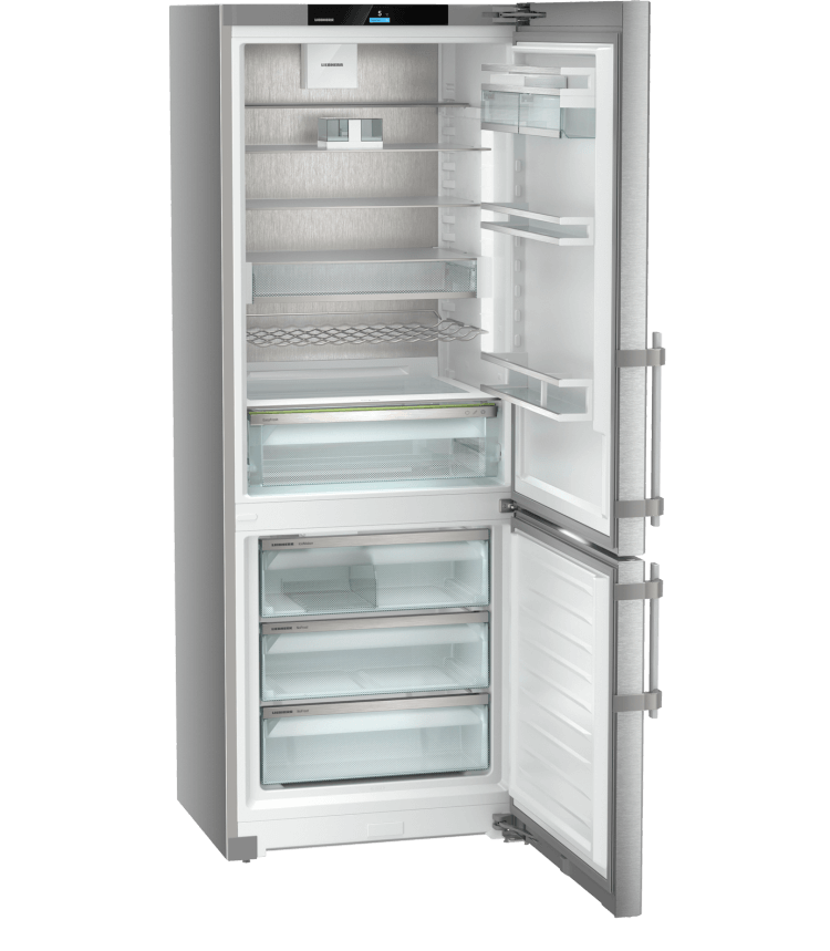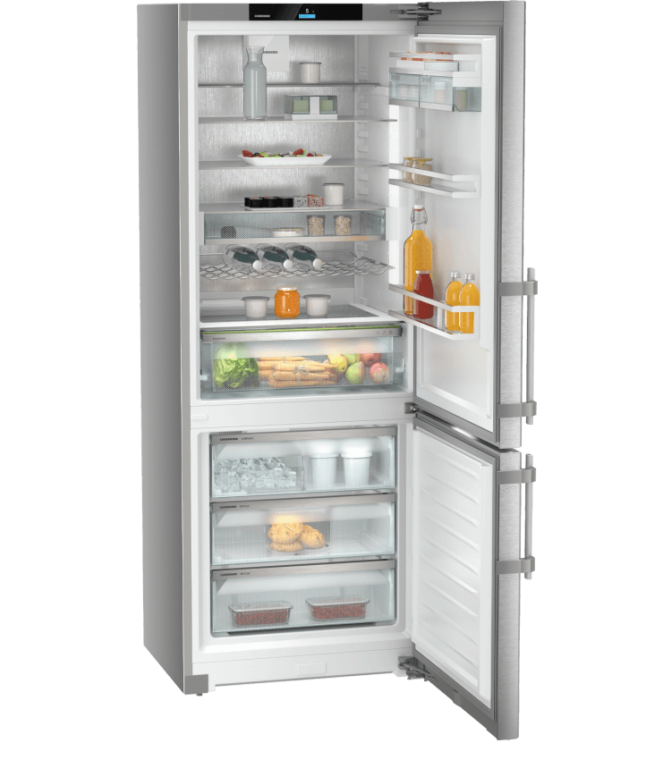 De Liebherr CNsdd 776i Prime is een luxe, extra brede (75 cm) koel-vriescombinatie met SmartSteel design, SoftSystem deursluiting en opvallend veel ruimte. Dankzij EasyFresh blijven groenten en fruit langer vers, terwijl de geïntegreerde IceMaker met vaste wateraansluiting altijd ijsblokjes levert. Het NoFrost vriesdeel hoeft nooit te worden ontdooid en dankzij LED-verlichting vind je alles snel terug. Het Touch & Swipe kleurendisplay en de geïntegreerde SmartDeviceBox maken bediening op afstand mogelijk. Met GlassLine plateaus, PowerCooling en VarioTemp biedt dit model uitzonderlijk comfort en slimme functionaliteit. Energieklasse D.