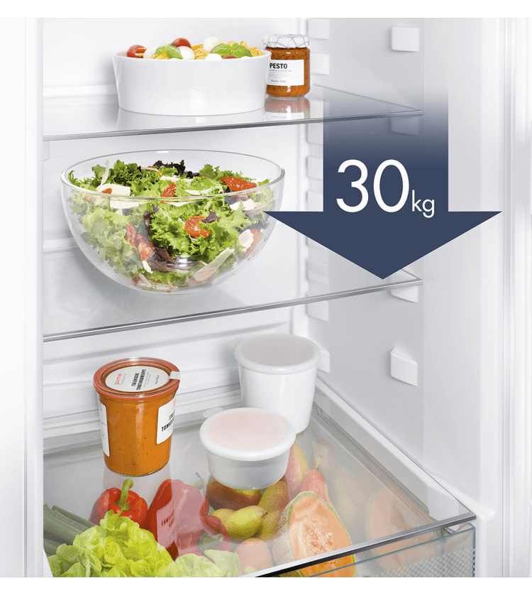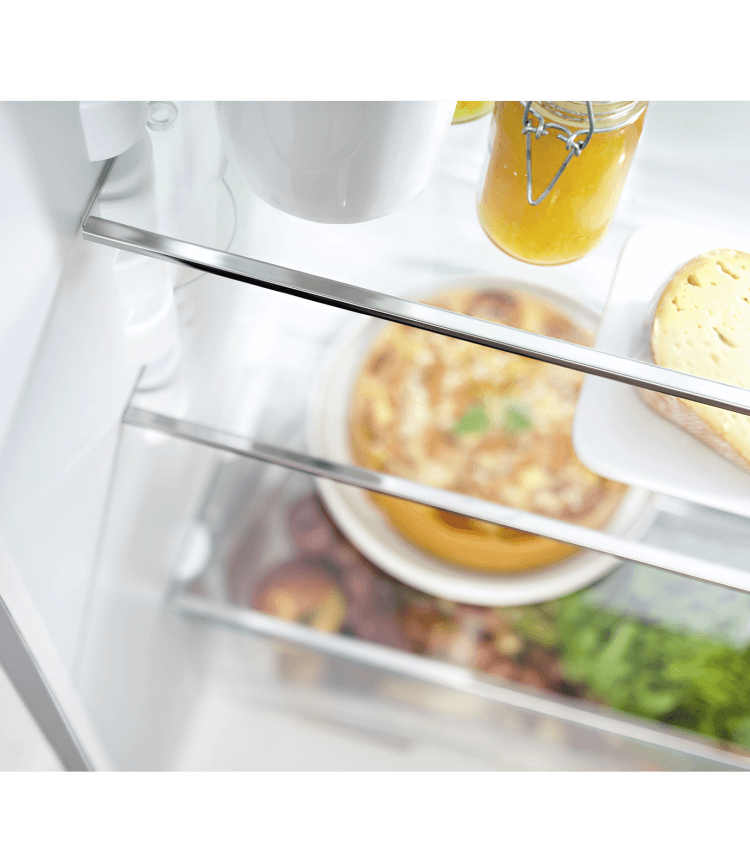 De LED-verlichting, GlassLine draagplateaus (tot 30 kg belastbaar), twee groentelades en een uitneembaar flessenrek zorgen voor overzicht en flexibiliteit. De deurvakken zijn in hoogte verstelbaar en eenvoudig uitneembaar, waardoor schoonmaken extra makkelijk wordt.