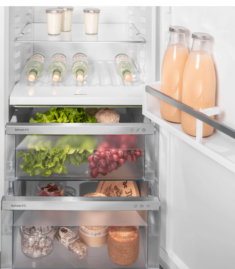 In de EasyFresh-lade blijven groenten en fruit langer vers dankzij een optimale luchtvochtigheid. PowerCooling met FreshAir filter zorgt voor een gelijkmatige temperatuur en een fris interieur. De VarioSafe biedt een praktische plek voor kleine potjes en verpakkingen, terwijl het deel- en onderschuifbare glasplateau extra flexibiliteit geeft bij hoge karaffen of grote schalen.