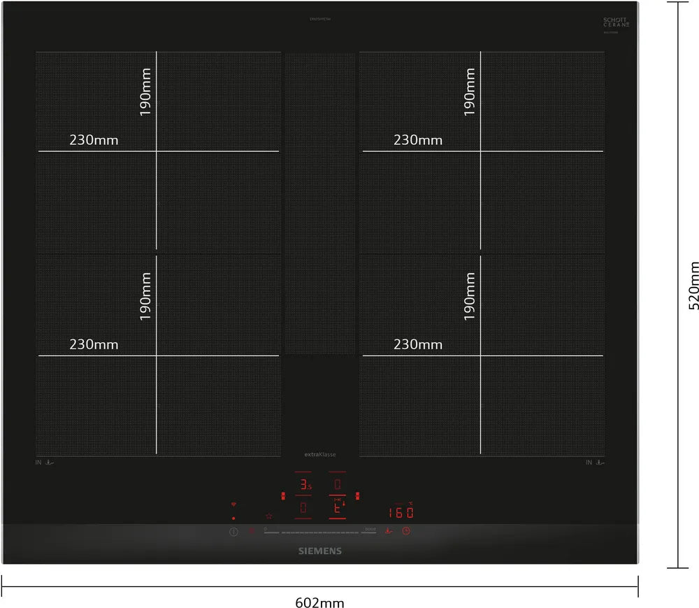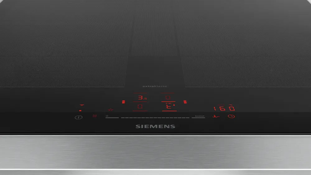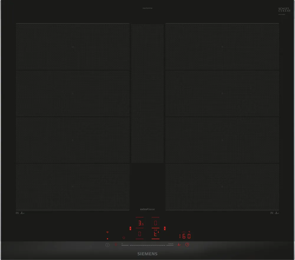 De Siemens EX675HYC1M is een compacte maar krachtige inductiekookplaat van 60 cm breed, ontworpen voor maximale flexibiliteit en gemak. Dankzij flexInduction Plus kun je twee kookzones samenvoegen tot één groot oppervlak, zodat ook grotere pannen of grillplaten perfect passen. De TouchSlider-bediening biedt nauwkeurige controle met één simpele veegbeweging, en met 17 vermogensstanden kook je altijd precies zoals jij wilt.