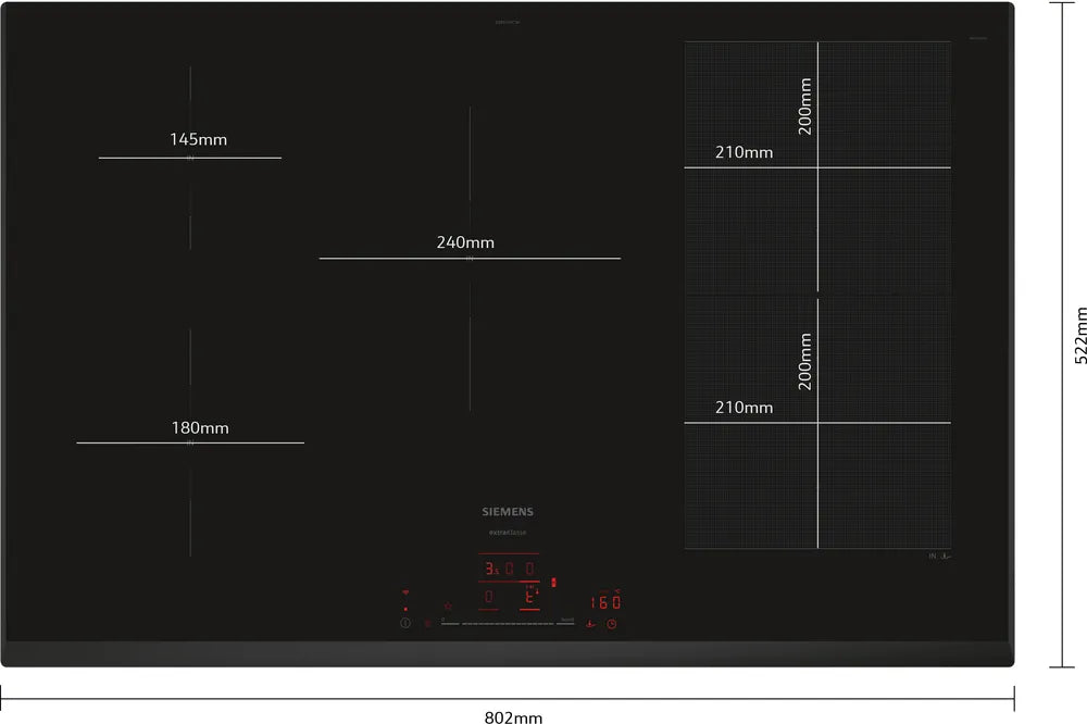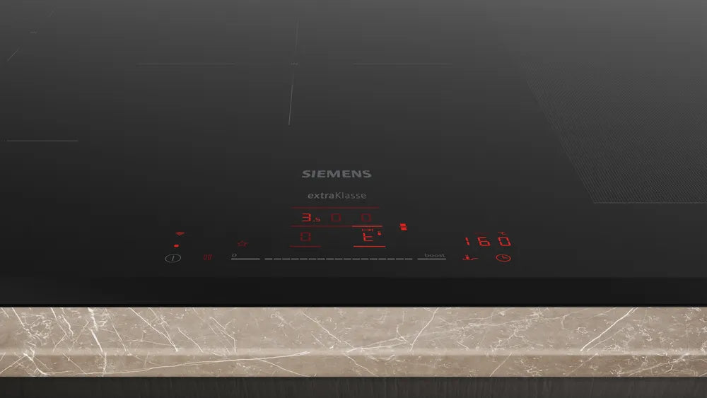 De Siemens EX851HVC1M is een premium inductiekookplaat van 80 cm breed die slimme technologie combineert met krachtig kookgemak. Dankzij de flexInduction-zone pas je de kookruimte flexibel aan jouw kookgerei aan, ideaal voor grote pannen of grillplaten. Met de TouchSlider-bediening regel je moeiteloos het vermogen van de vijf kookzones met één vingerbeweging.