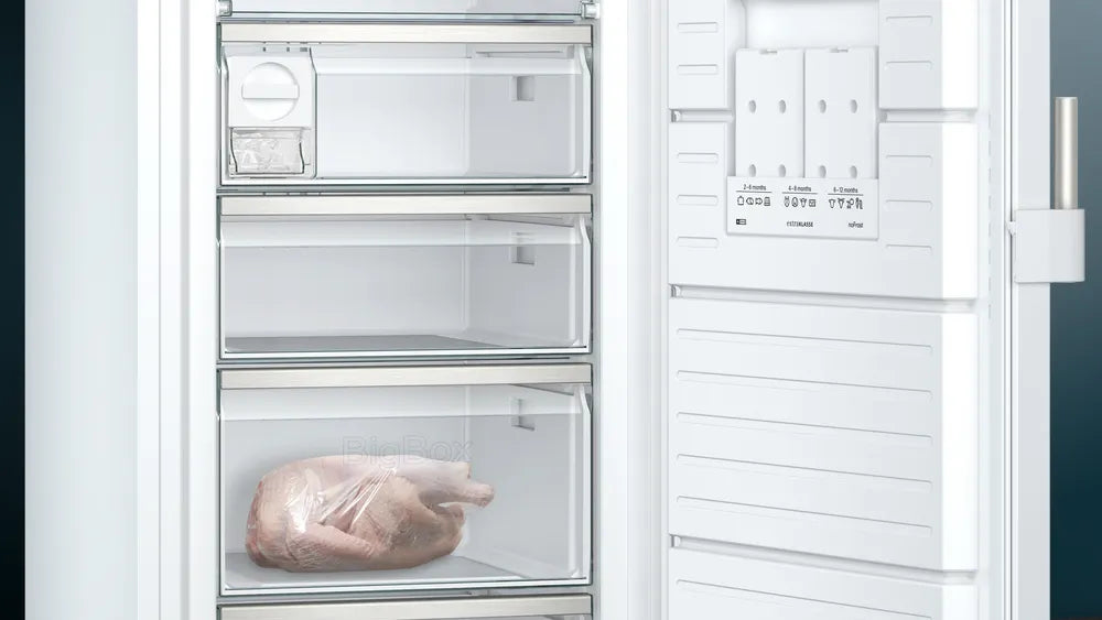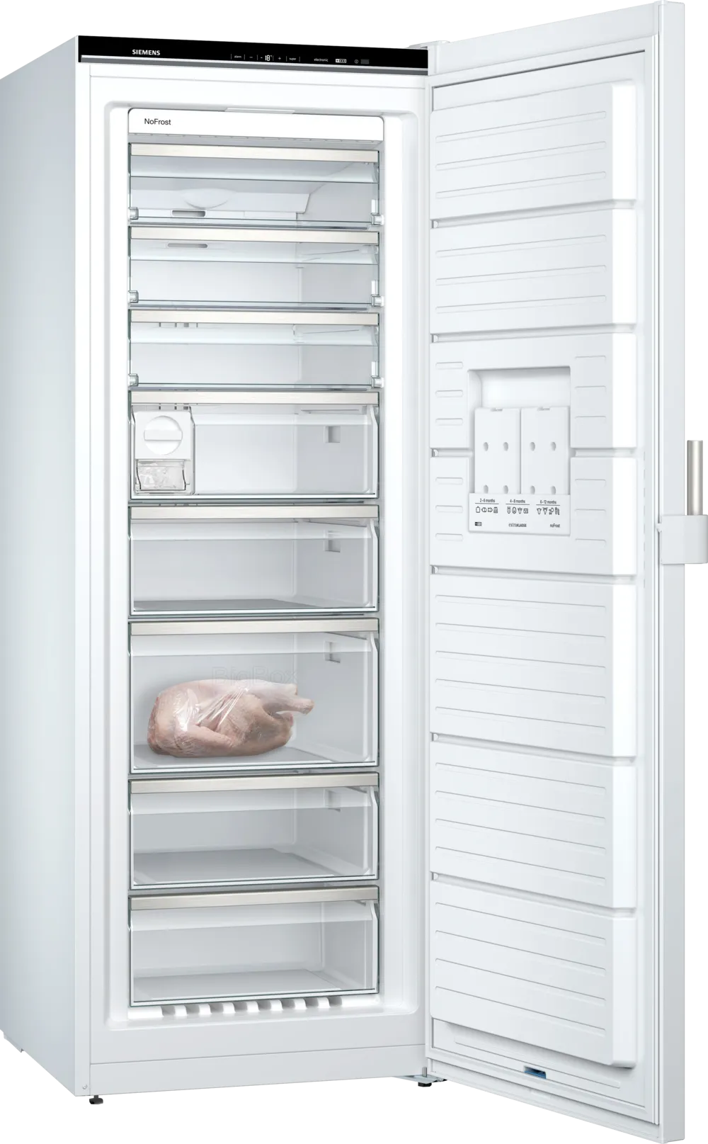 De Siemens GS58NEWCV iQ500 extraKlasse is de perfecte vrieskast voor wie veel bewaart en houdt van gemak en ruimte. Met een royale inhoud van 366 liter en energieklasse C combineert dit model uitstekende prestaties met efficiënt energieverbruik. Dankzij noFrost hoef je nooit meer te ontdooien, de luchtvochtigheid wordt automatisch geregeld, zodat ijsvorming verleden tijd is.