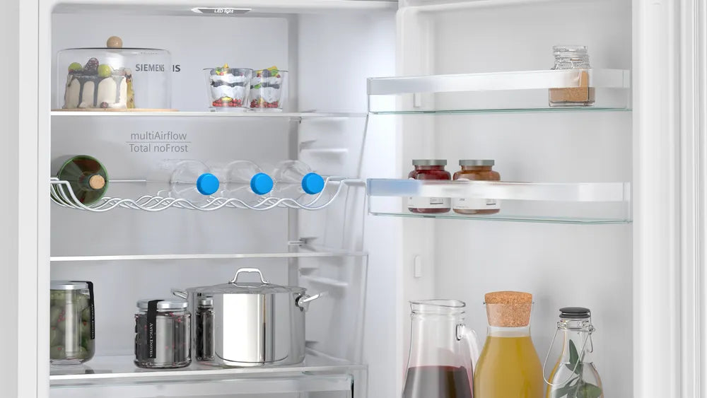 Het hyperFresh <0°C> vershoudsysteem creëert de ideale omgeving om groenten, fruit, vlees en vis langer vers te houden, terwijl het multiAirflow-systeem zorgt voor een gelijkmatige luchtverdeling op alle niveaus, van boven tot onder perfect gekoeld. Met de handige superKoelen-functie worden nieuwe boodschappen in recordtijd op temperatuur gebracht. De LED-verlichting met softStart zorgt voor helder overzicht, terwijl het geïntegreerde flessenrek flessen veilig en overzichtelijk opbergt.