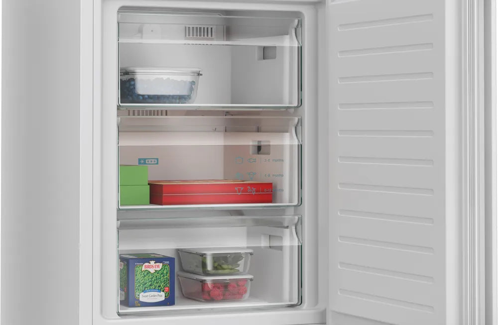 De Siemens KG36N2WCF iQ300 extraKlasse brengt innovatie en efficiëntie samen in een stijlvol wit design dat in elke keuken tot zijn recht komt. Met energieklasse C biedt deze koel-vriescombinatie een uitstekende balans tussen prestaties en verbruik. Dankzij Total noFrost hoef je nooit meer te ontdooien en blijft zowel het koel- als vriesgedeelte vrij van ijs en condens.