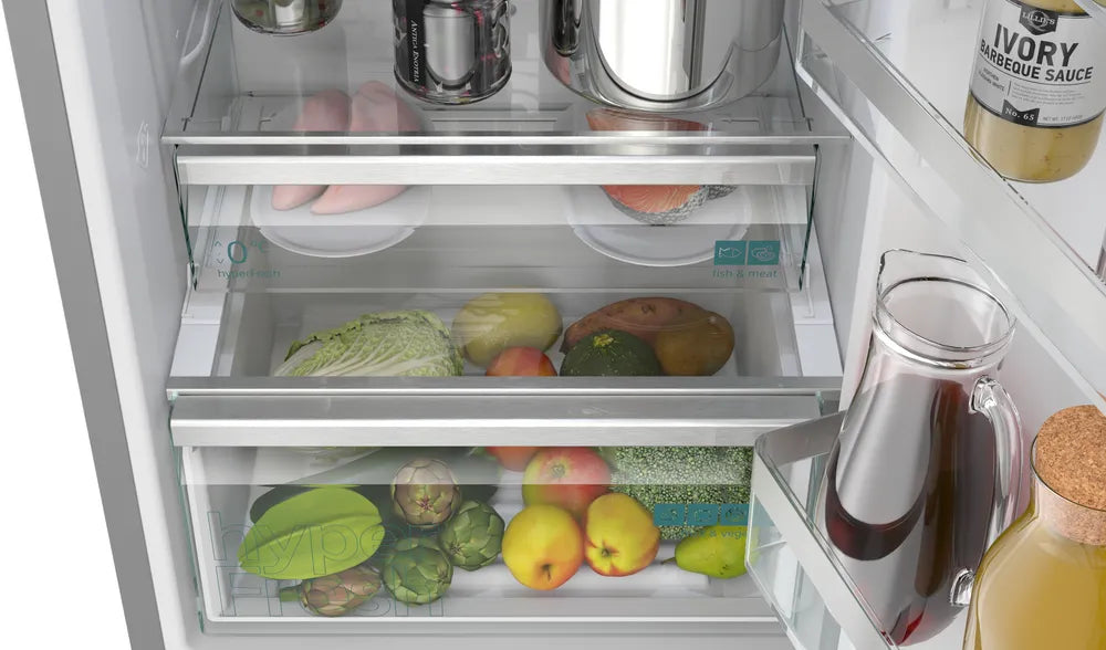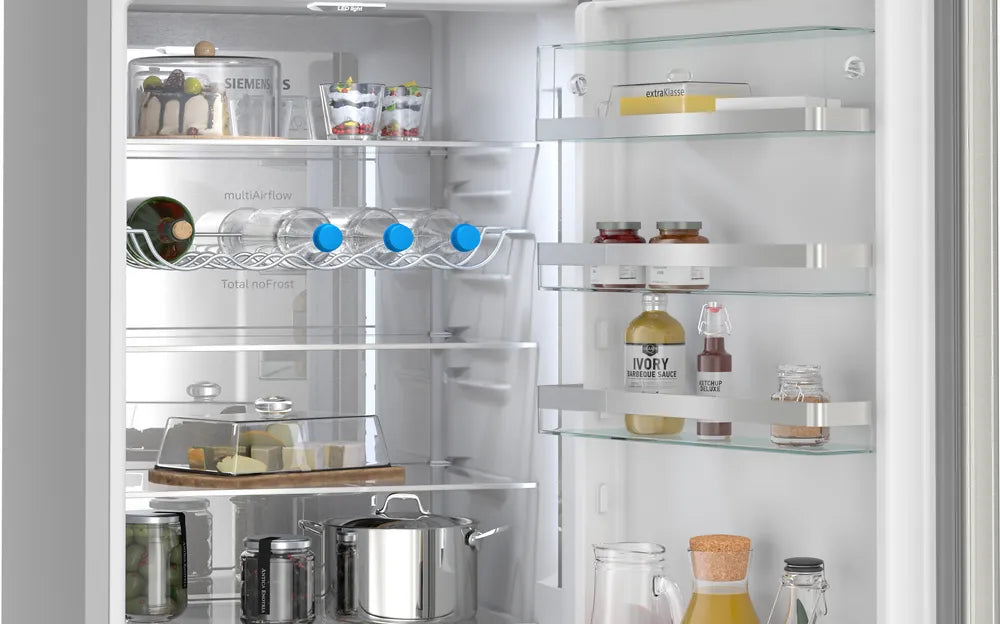 De innovatieve Total noFrost-technologie voorkomt ijsvorming in zowel het koel- als vriesgedeelte, waardoor je nooit meer hoeft te ontdooien. Dankzij het hyperFresh <0°C> vershoudsysteem blijven groenten, fruit, vlees en vis langer vers in de ideale luchtvochtigheid en temperatuur. De metalen achterwand met multiAirflow zorgt ervoor dat de koele lucht gelijkmatig door het hele apparaat circuleert, geen koude plekken of condensvorming meer.