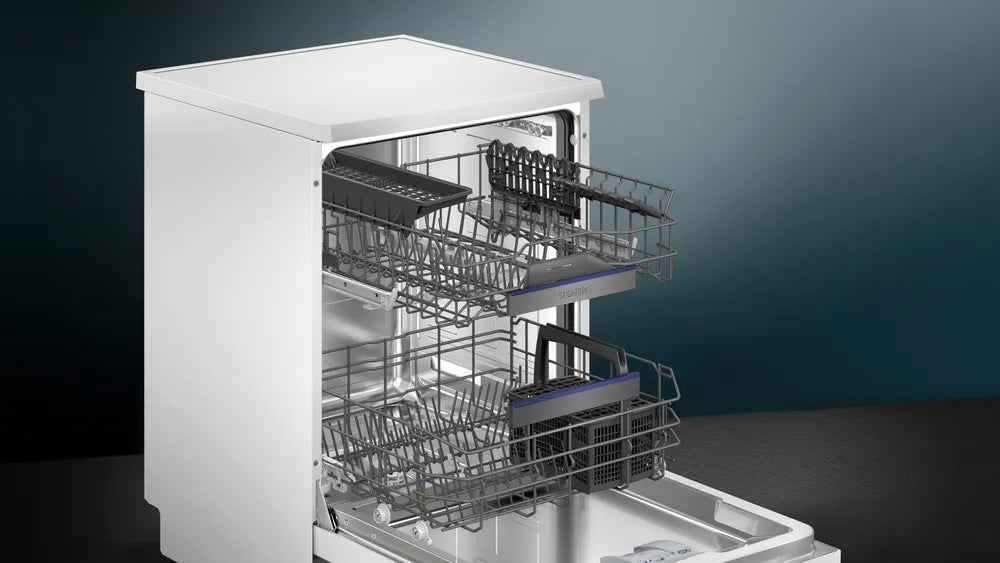 De Siemens SN23EW20BE iQ300 extraKlasse is een slimme en energiezuinige vrijstaande vaatwasser die comfort en efficiëntie perfect combineert. Met energieklasse C, een geluidsniveau van slechts 40 dB(A) en een waterverbruik van 9 liter per cyclus, reinigt deze vaatwasser grondig en fluisterstil.
