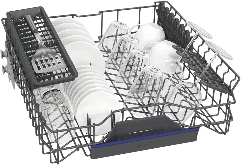 De Siemens SX63EX20BE is een XXL inbouwvaatwasser met royale afmetingen van 86,5 cm hoog, 59,8 cm breed en 55 cm diep, ontworpen voor wie nét wat meer ruimte wil in de keuken. Deze volledig integreerbare vaatwasser biedt tot 13 couverts en combineert stille prestaties (slechts 40 dB) met slimme functies zoals Home Connect en AutoOpen Dry.