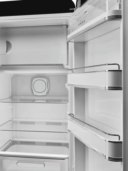 De Smeg FAB28RDBLM6 in matzwart is een stijlvolle blikvanger met een stoere, eigentijdse uitstraling. Deze retrokoelkast uit de Jaren 50-lijn combineert tijdloos Italiaans design met moderne koeltechnologie. De zachte matte afwerking en verchroomde details geven een luxe uitstraling die in elk interieur past, van strak modern tot industrieel chic.